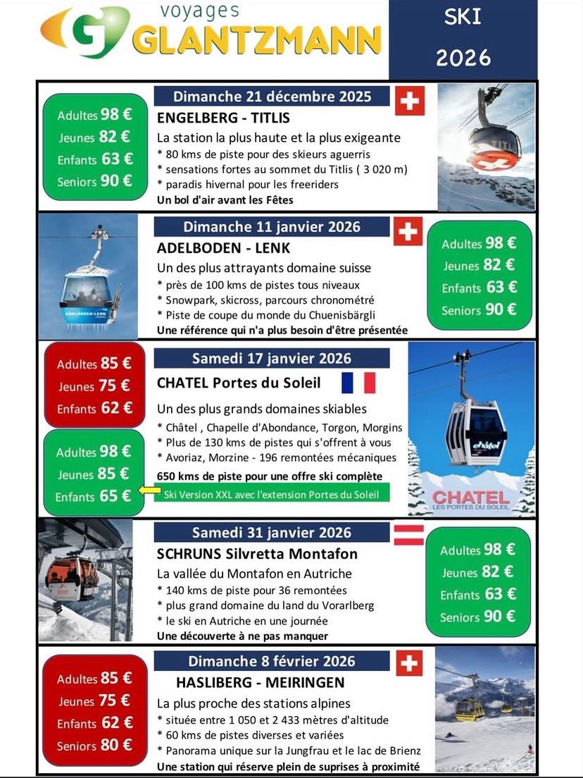 Vous étiez déjà nombreux à nous le demander, voici le programme de nos excursions au ski pour la saison hivernale 2026 !